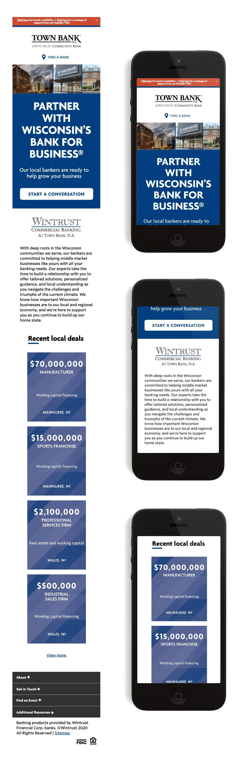 Launch the first campaign for Wintrust’s Town Bank Wisconsin locations through a suite of assets highlighting our bankers commitment to the area, personalized approach, and recent local deals to drive home that Town Bank is the best choice for middle market businesses and their owners.